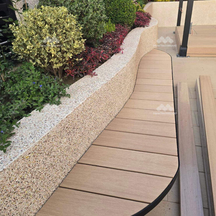 花箱轉角連接樓梯側牆,NewTechWood將二者完美融合,