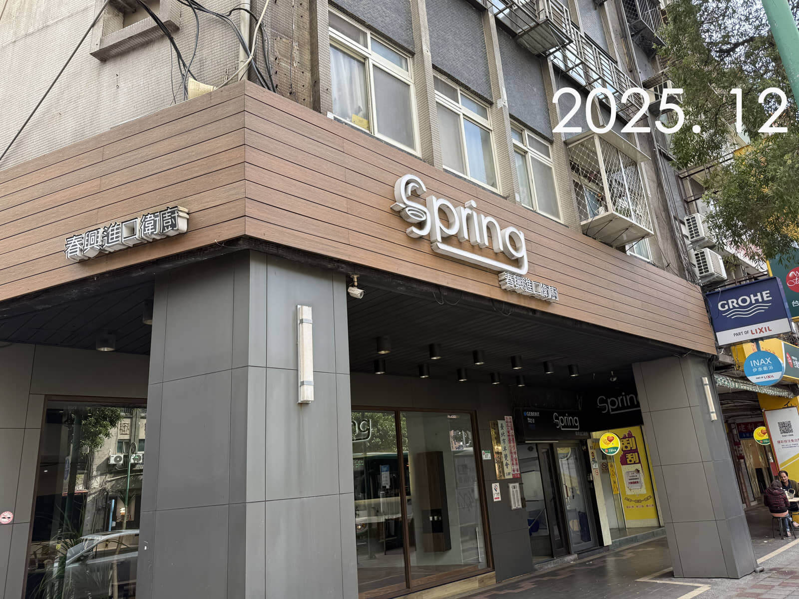 於台北市重慶北路一段的《春興進口衛浴》,不僅專營高端衛浴設備,招牌也展現了令人激賞的空間設計與施工能力。 2021年,春興親自規劃並完成門面裝修,選用我們「美新塑木|柚木色塑木板」,打造出兼具質感與耐候性的立面效果。
