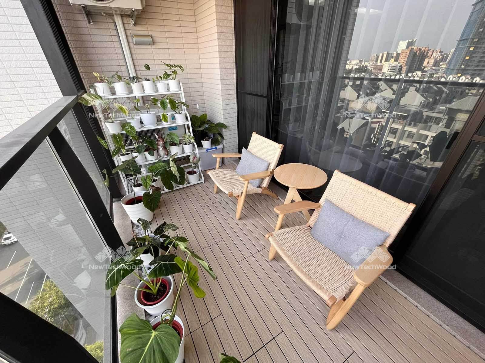 在都市的喧囂中,打造一方靜謐綠洲不再是夢。這座陽台改造選用 美新NewTechWood DIY快組地板,輕鬆拼裝、免工具施工,讓空間瞬間升級,展現 Scandinavian Wood 北歐木質風格的自然美感。