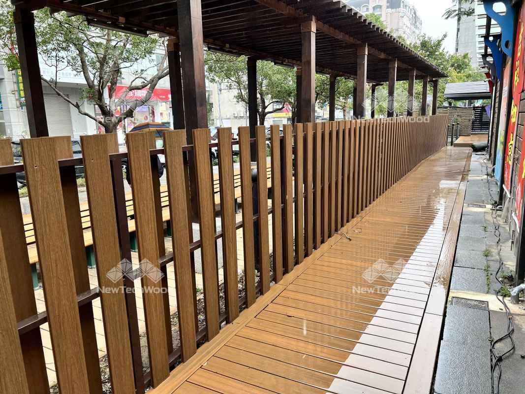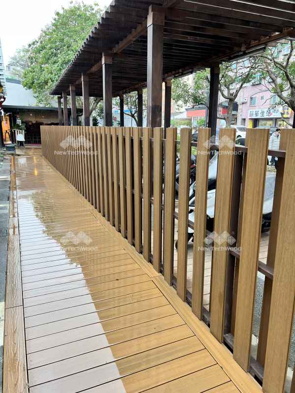 竹東車站的步道與圍籬焕然一新!此次改造選用 美新塑木柚木色,其高級實木外觀搭配耐久防污特性,為旅客打造更舒適的環境。