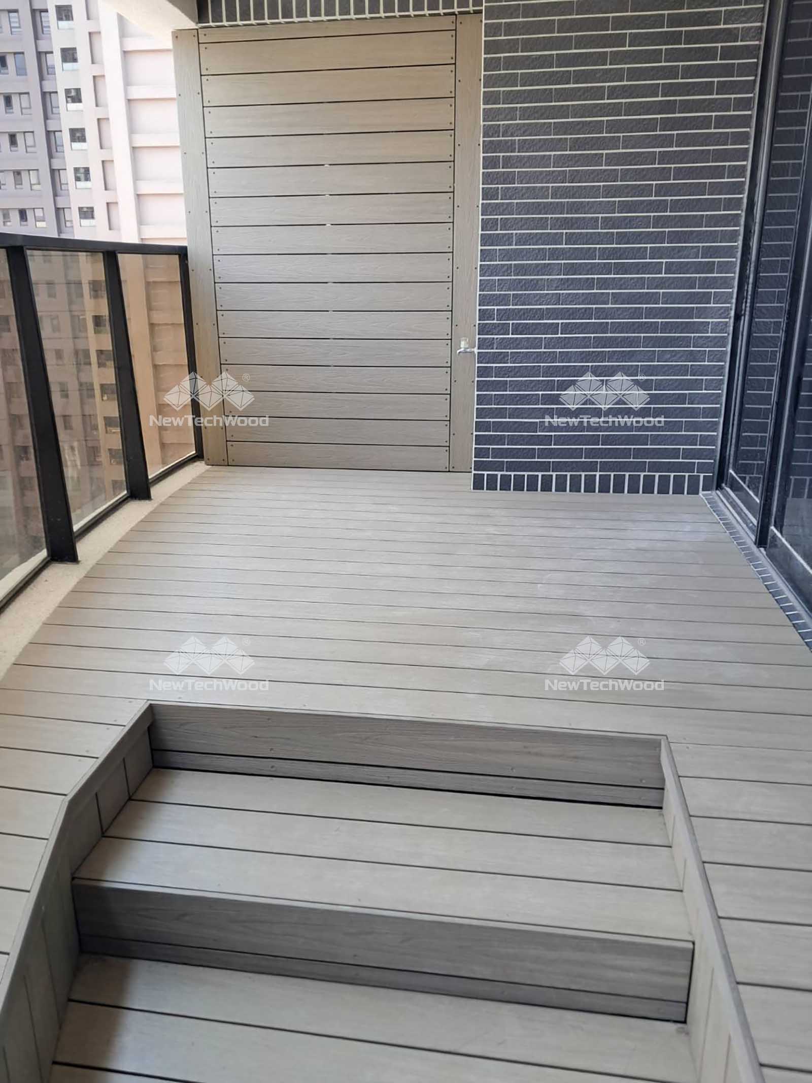 在高雄左營的一戶高雄厝中,一座陽台悄然成為生活美學的延伸。這不只是休憩的角落,更是一場關於材質、設計與南方氣候的對話。由南部經銷商:科尼地板 精心規劃與施工,此案選用 NewTechWood古木系列,將地板與牆面一體化設計,打造出兼具耐候性與視覺溫度的戶外空間。